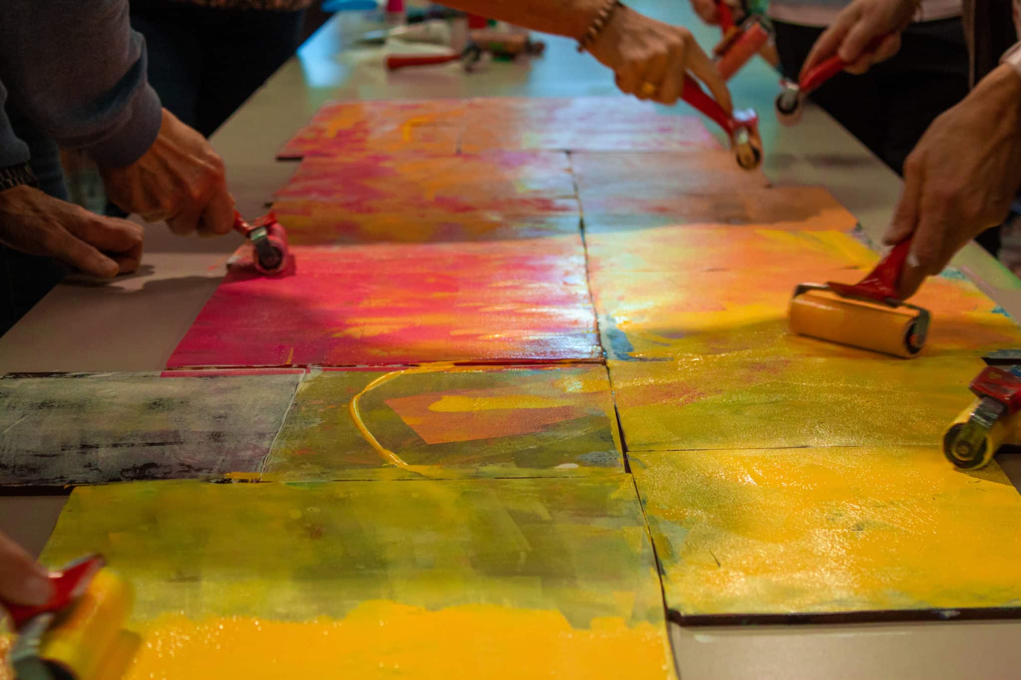 Vi arbeider i fellesskap med ulike teknikker og materialer. Vi har fokus på samskaping og skaperglede. Du trenger ingen forkunnskaper.