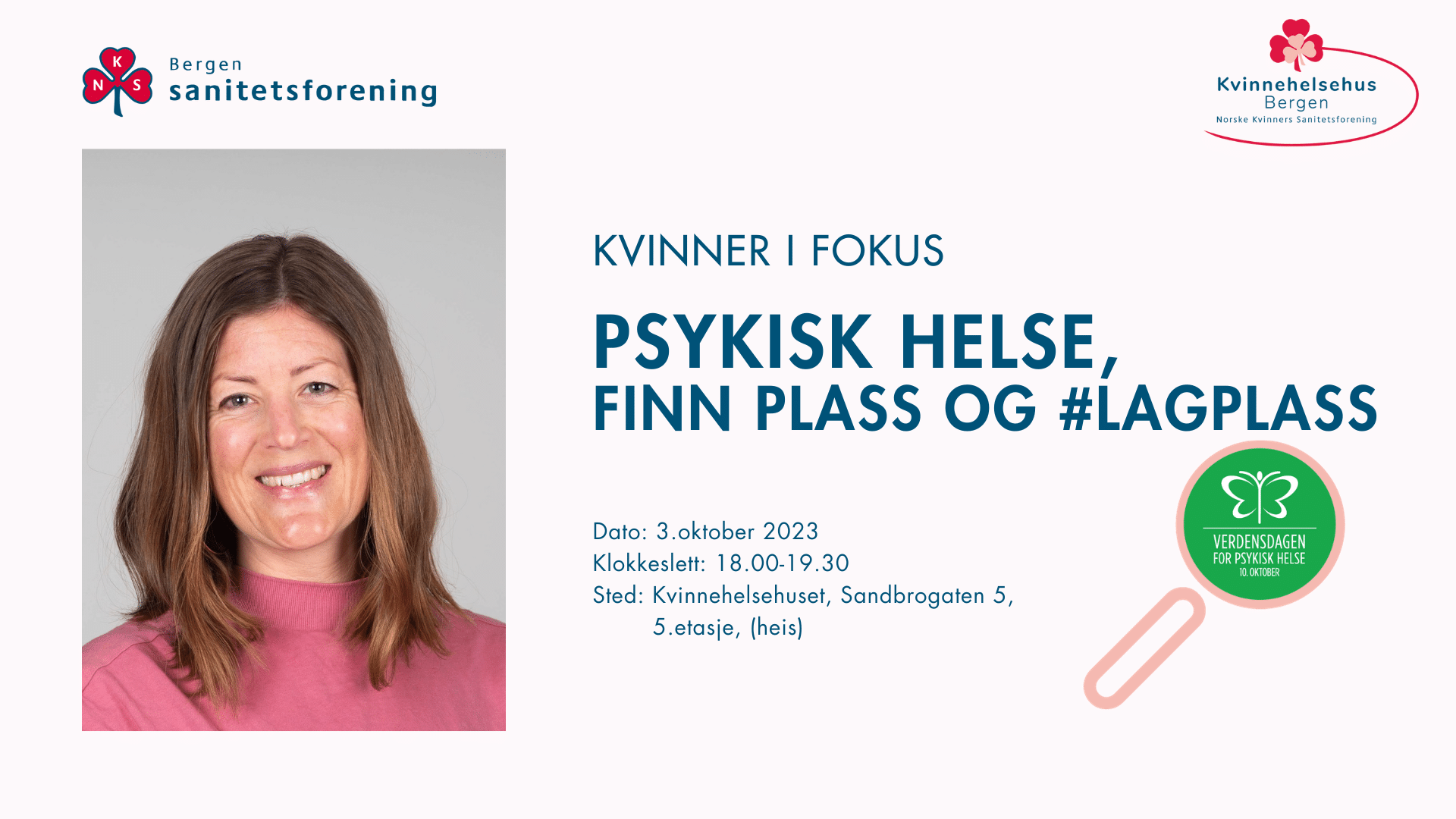 Kvinner i fokus på huset, 3. oktober, med tema psykisk helse, #lagplass
