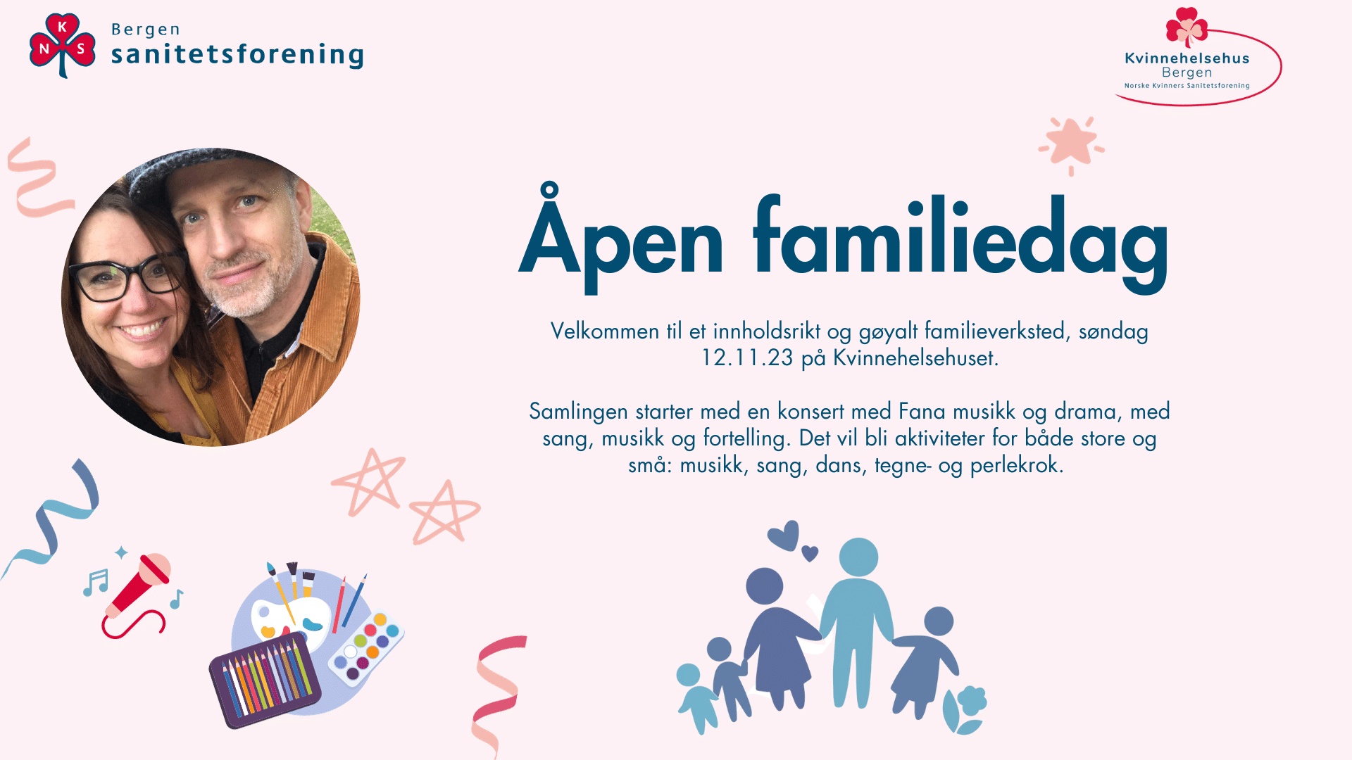 Åpen familiedag på Kvinnehelsehuset! Det blir aktiviteter for store og små – velkommen.