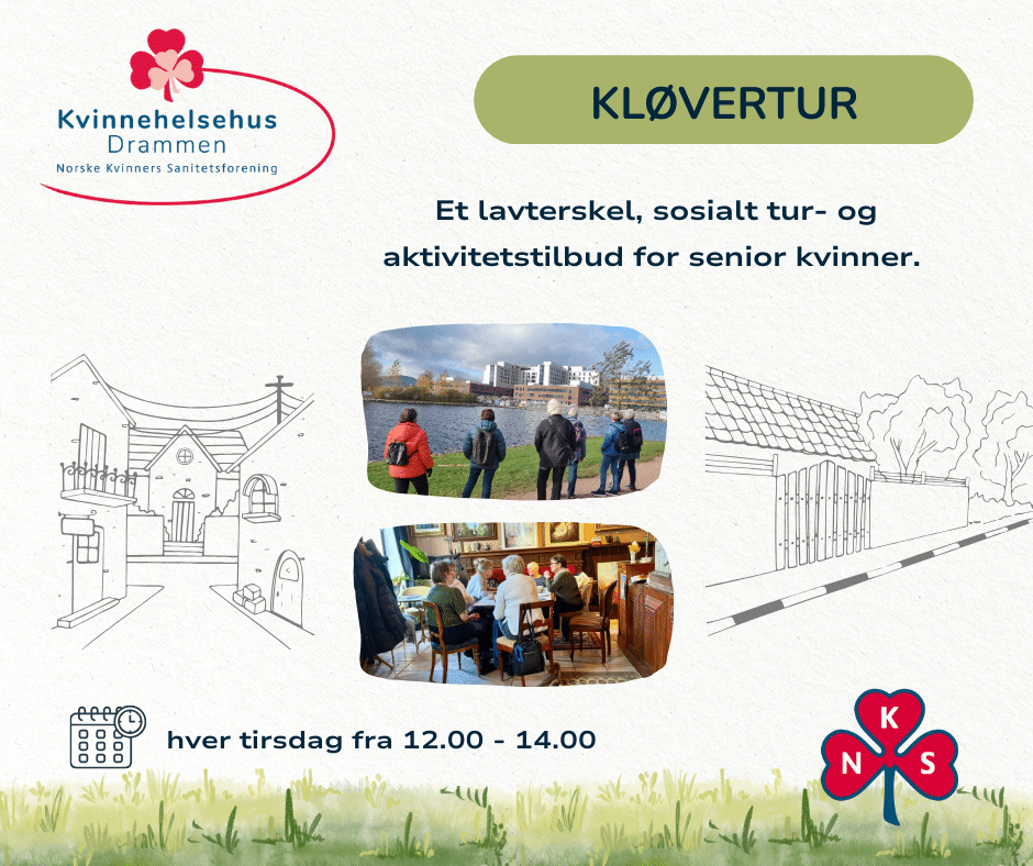 Velkommen til en Kløvertur for senior kvinner, hver tirsdag kl.12.00-14.00. Oppmøte på Villa Nora.